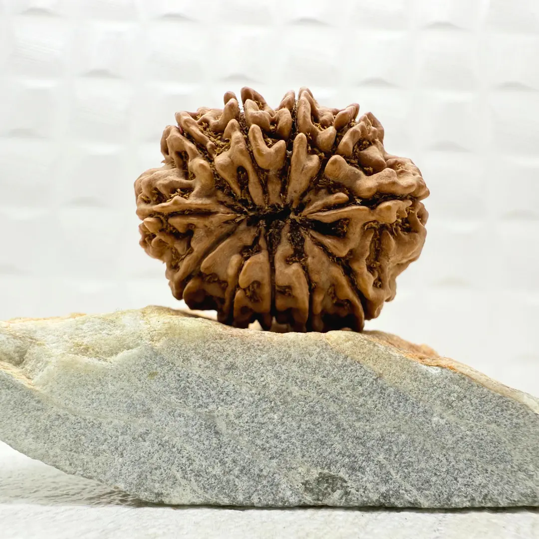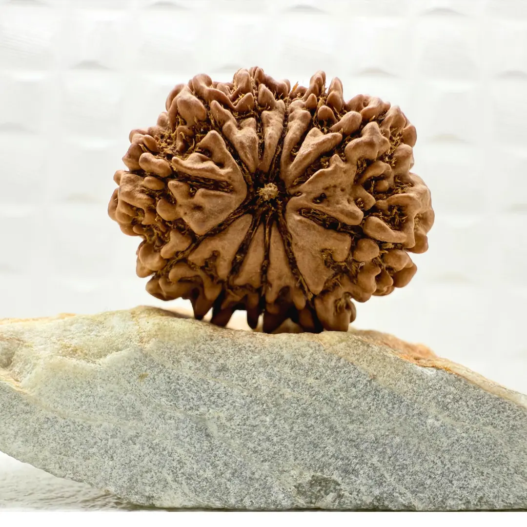 The Eleven Mukhi Rudraksha is a sacred bead featuring eleven natural lines running from top to bottom. It is believed to be blessed by Lord Hanuman, granting the wearer immense strength, courage, and resilience. In Indian mythology, this Rudraksha holds the light of Lord Rudra Shiva, also known as the Eleven Rudras. For devotees of Lord Shiva, it is considered one of the most powerful and effective Rudrakshas. Even mentioning Lord Hanuman, the eleventh Rudra, is said to repel ghosts and negative energies.